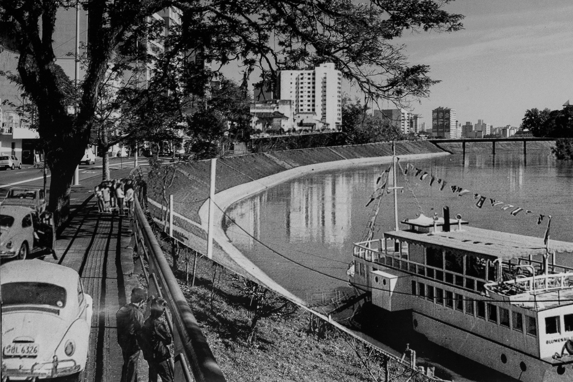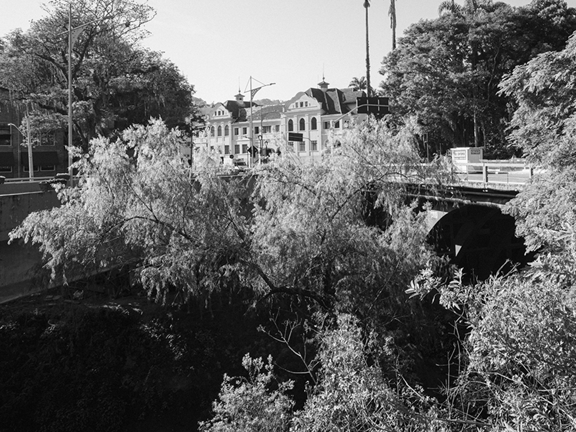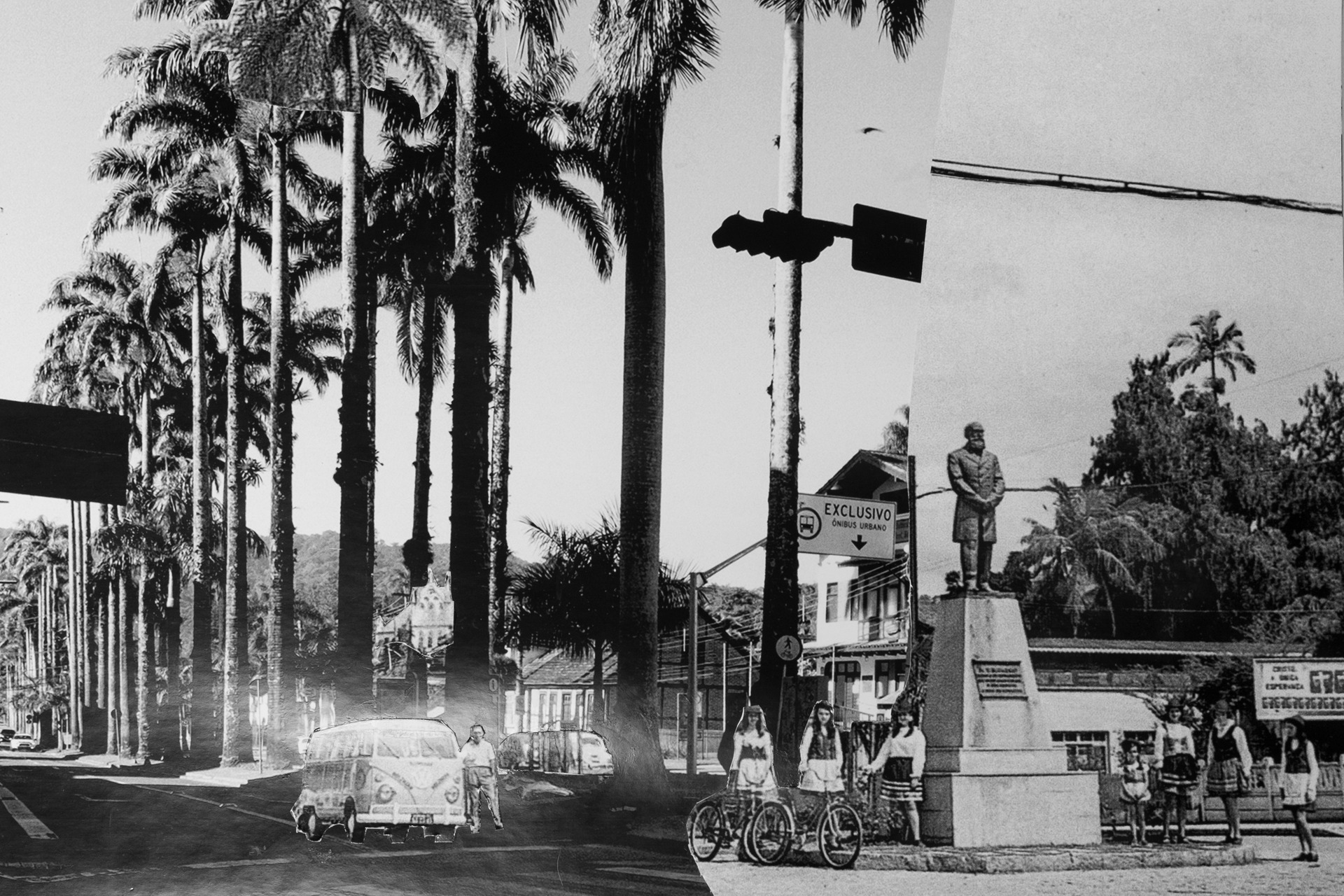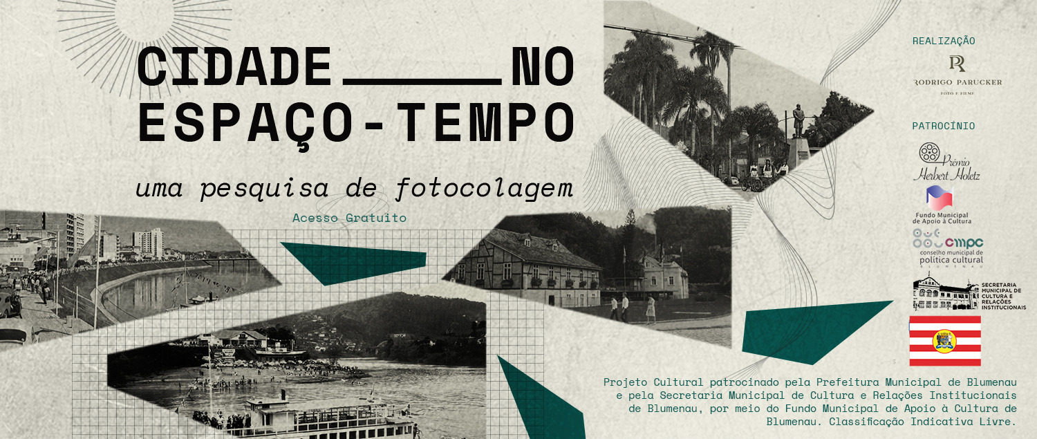 Os pesquisadores-fotógrafos-artistas Ruth Rodrigues e Rodrigo Parucker pesquisaram fotografias documentais da arquitetura e espaços geográficos de Blumenau e, a partir dos registros encontrados, realizaram novas fotografias desses espaços nos dias atuais (mesmo local e ângulo). Essas duas fotografias - a histórica e a atual - foram impressas e a partir delas, com a proposta artística de fotocolagem feita manualmente, foram criadas novas composições fotográficas que compõe esta exposição.