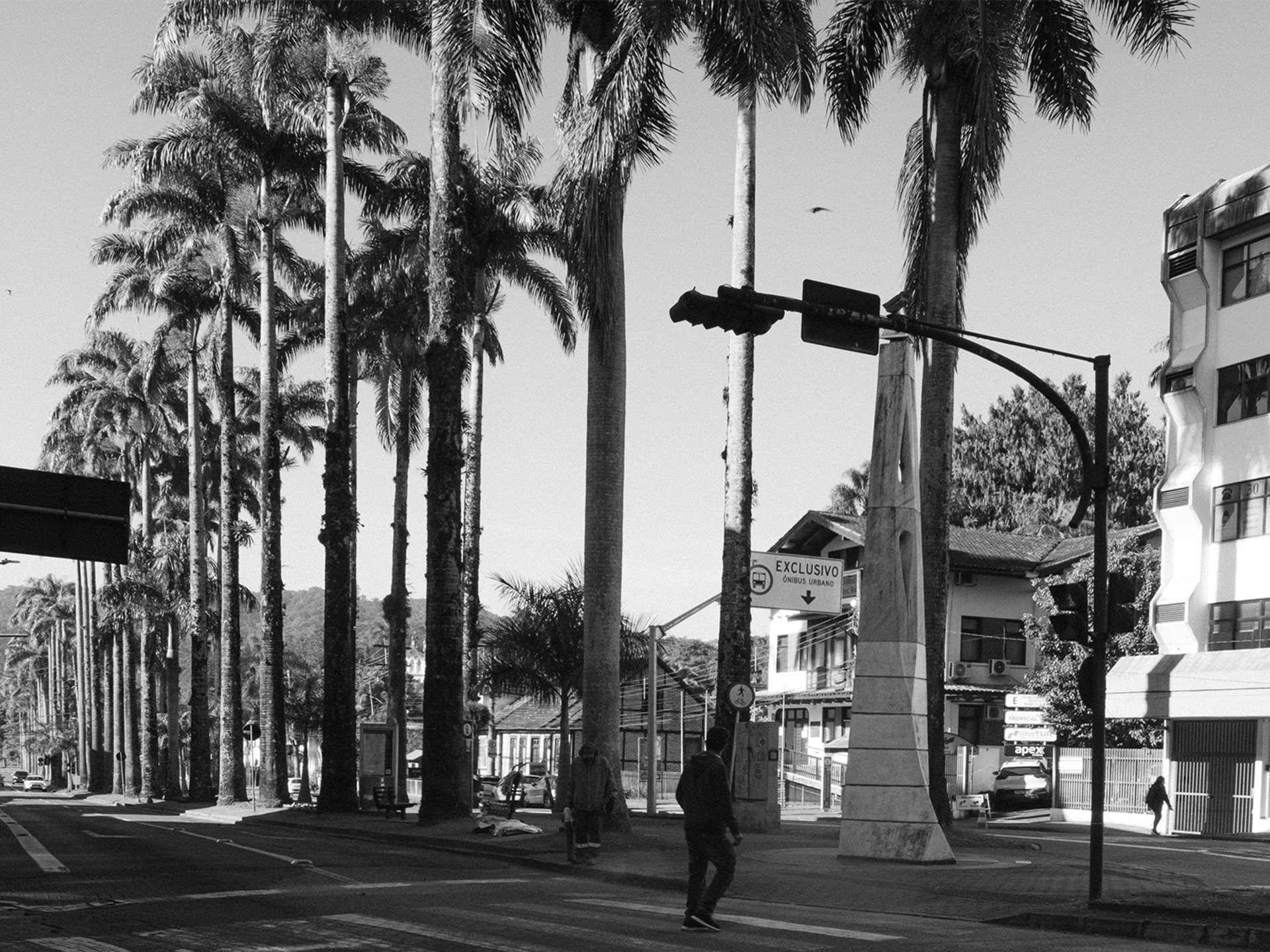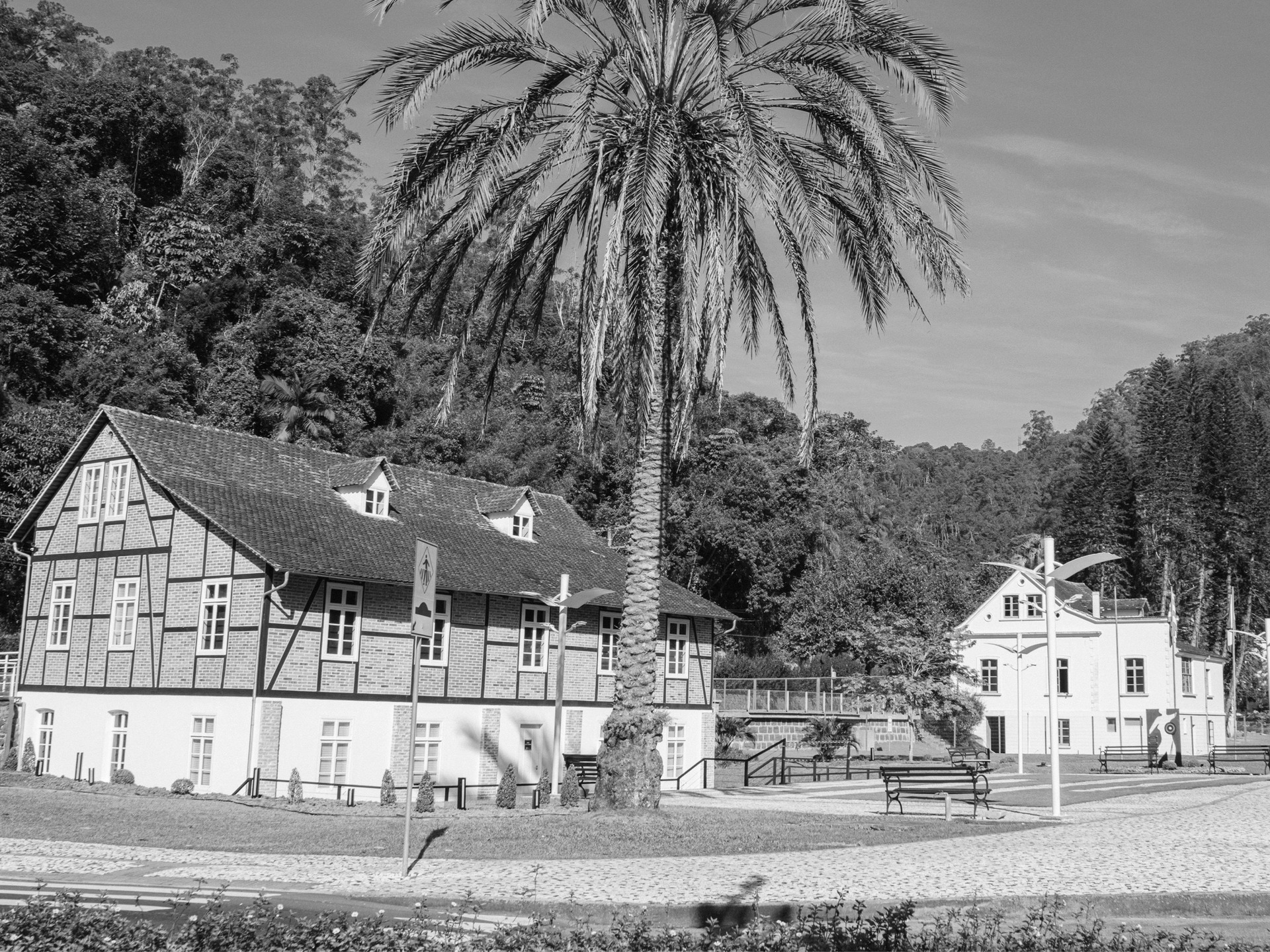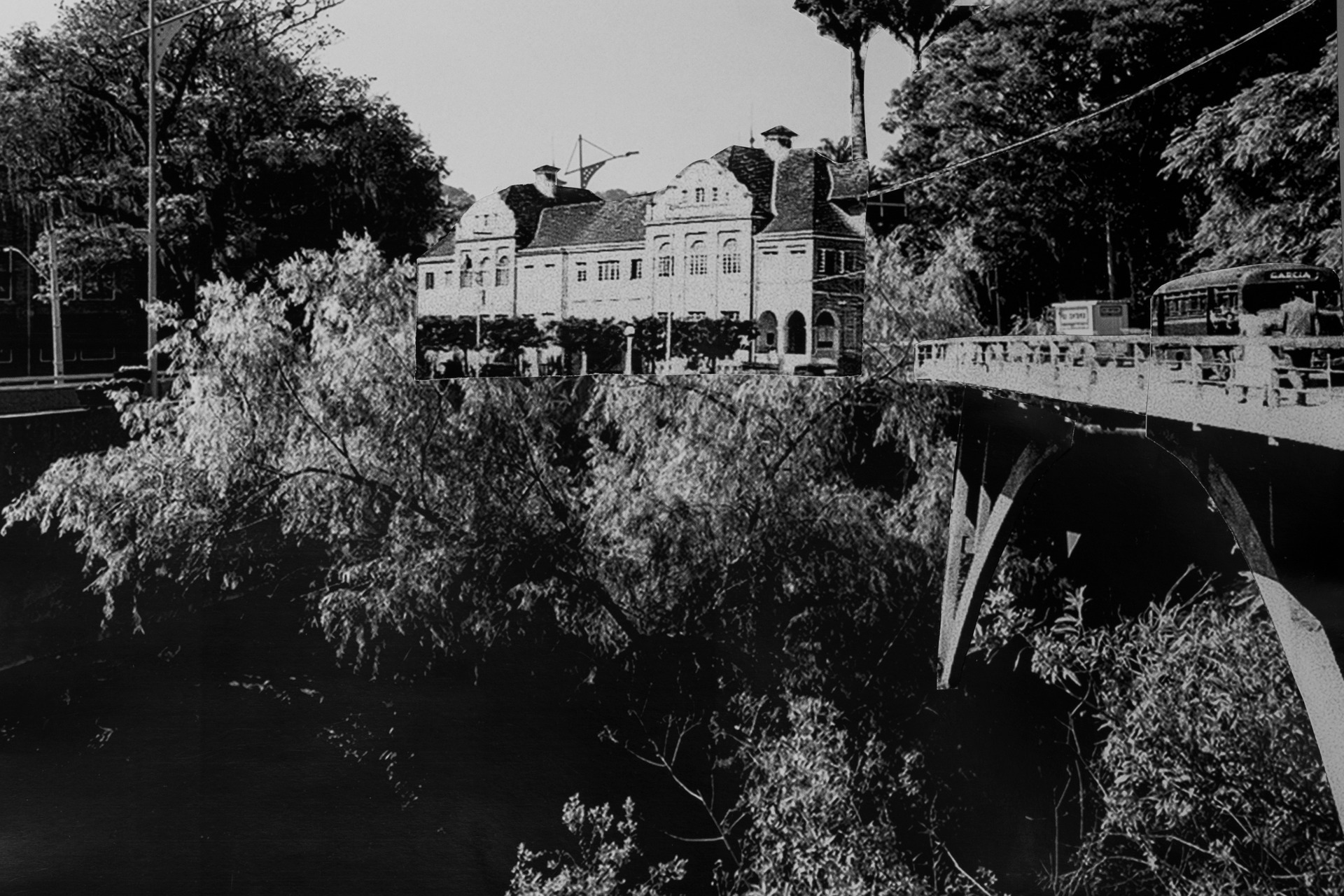 Os pesquisadores-fotógrafos-artistas Ruth Rodrigues e Rodrigo Parucker pesquisaram fotografias documentais da arquitetura e espaços geográficos de Blumenau e, a partir dos registros encontrados, realizaram novas fotografias desses espaços nos dias atuais (mesmo local e ângulo). Essas duas fotografias - a histórica e a atual - foram impressas e a partir delas, com a proposta artística de fotocolagem feita manualmente, foram criadas novas composições fotográficas que compõe esta exposição.